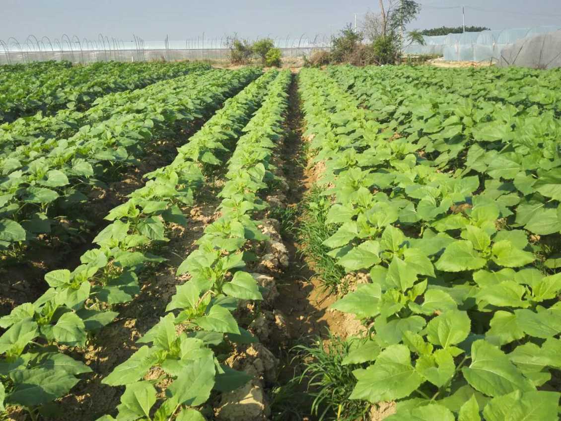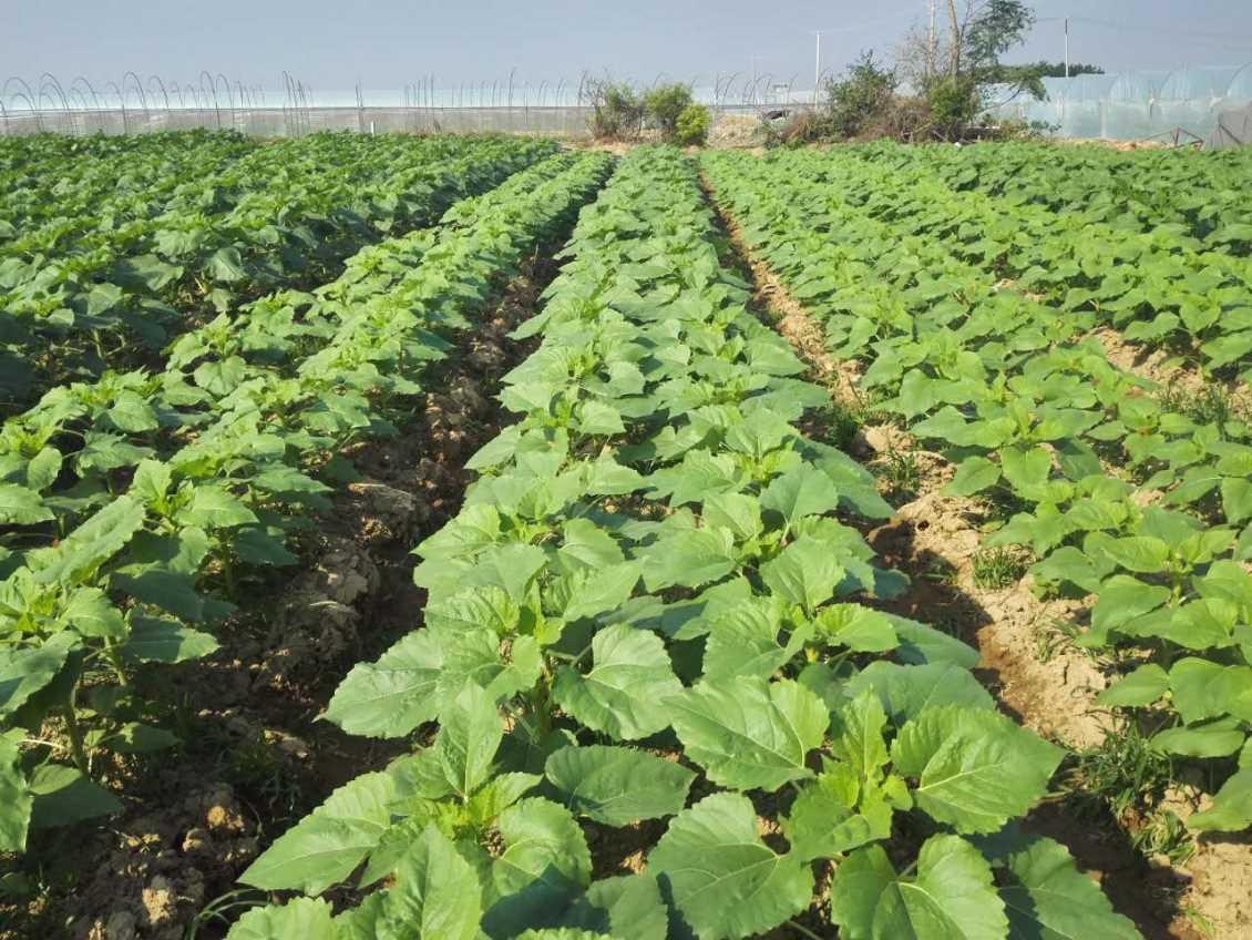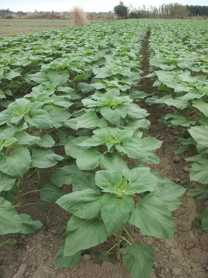 4. 灌水:向日葵属于耐旱作物,灌水次数不需太多,生长前期如无特殊干旱,应少灌水,以利蹲苗。但是向日葵在开花前后对水肥特别敏感,因此从现蕾到灌桨期遇旱时,应及时灌水。
