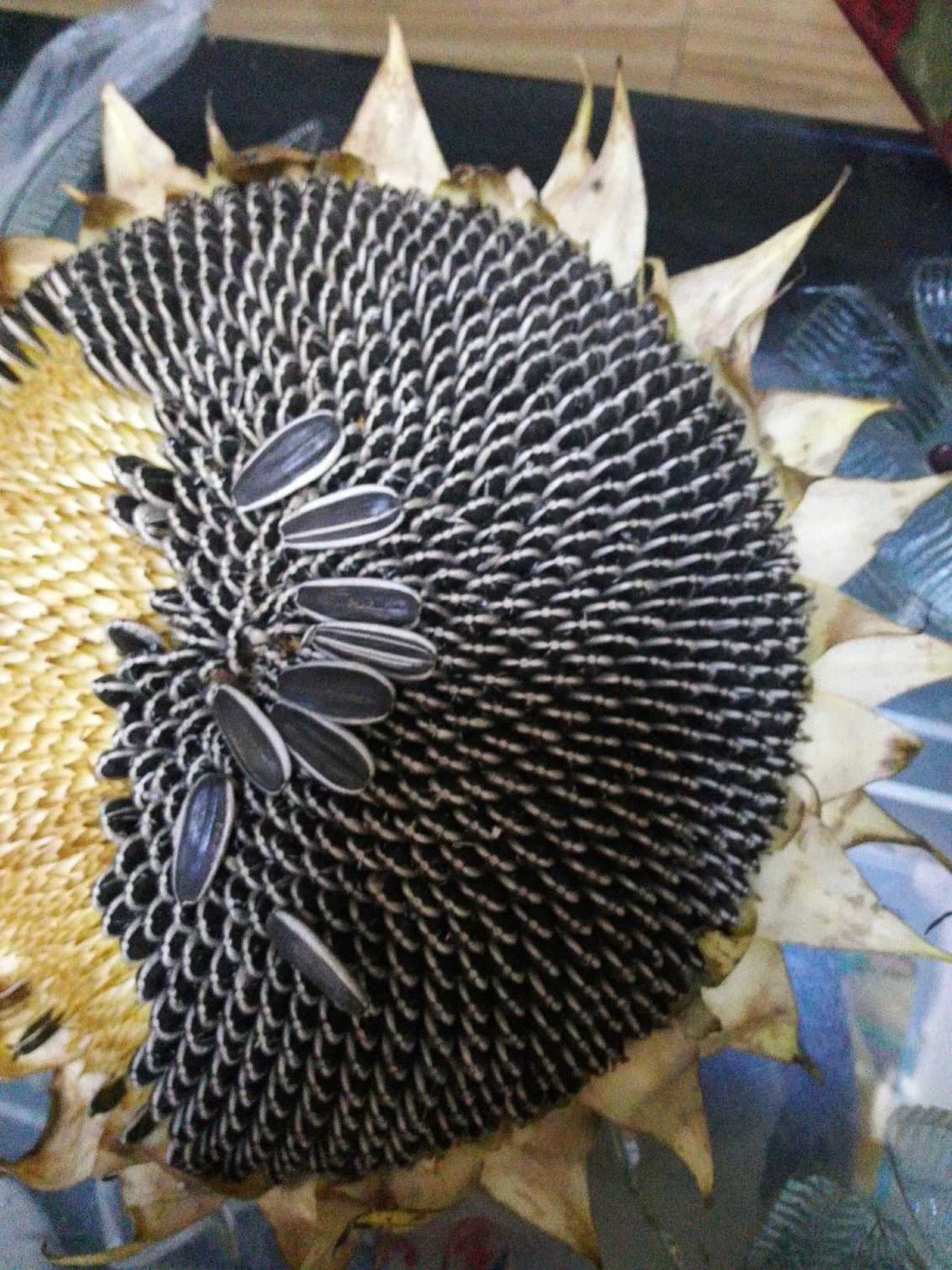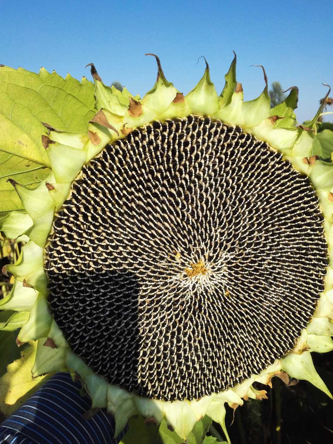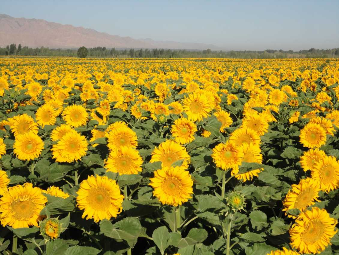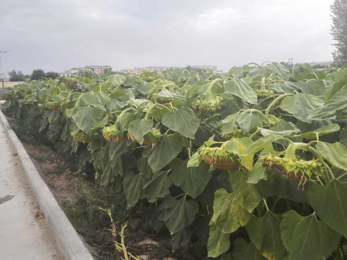 6. 收获:适时收获,葵花花盘背面变成褐色,舌状花朵开始脱落,苞叶枯黄,开始收获。注意:收获时应避开阴雨天气,和花盘大堆存放,及时脱粒晾晒,以防脱皮霉变。