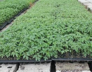 播种方法:当催芽种子70%以上露白时即可播种。播种前苗床浇足底水,湿润至床土深10cm。水渗下后用营养土薄撒一层,找平床面,然后均匀地撒播,播后覆营养土-cm。每667m2苗床再用50%多菌灵可湿性粉剂8g或50%拌种双粉剂7g,拌上细土均匀薄撒于床面上,用以防治猝倒病。积极提倡采用营养钵、育苗盘、纸袋等方法播种育苗。