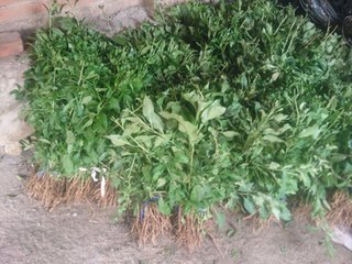 调运的苗木根系要进行蘸泥浆处理,每50株一捆,装入草袋,草袋下部填入少许锯末,洒水捆好。用标签注明苗木品种、规格、产地出圃日期、数量。运输途中要严防风干和霉烂。